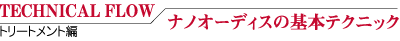 「ナノオーディス‐S」(40g)と「ナノオーディス‐α」(20ml)を混ぜたものを塗布(2:1) 傷んだ髪質の場合は「ナノオーディス‐α」を毛先に多めに塗布。 |